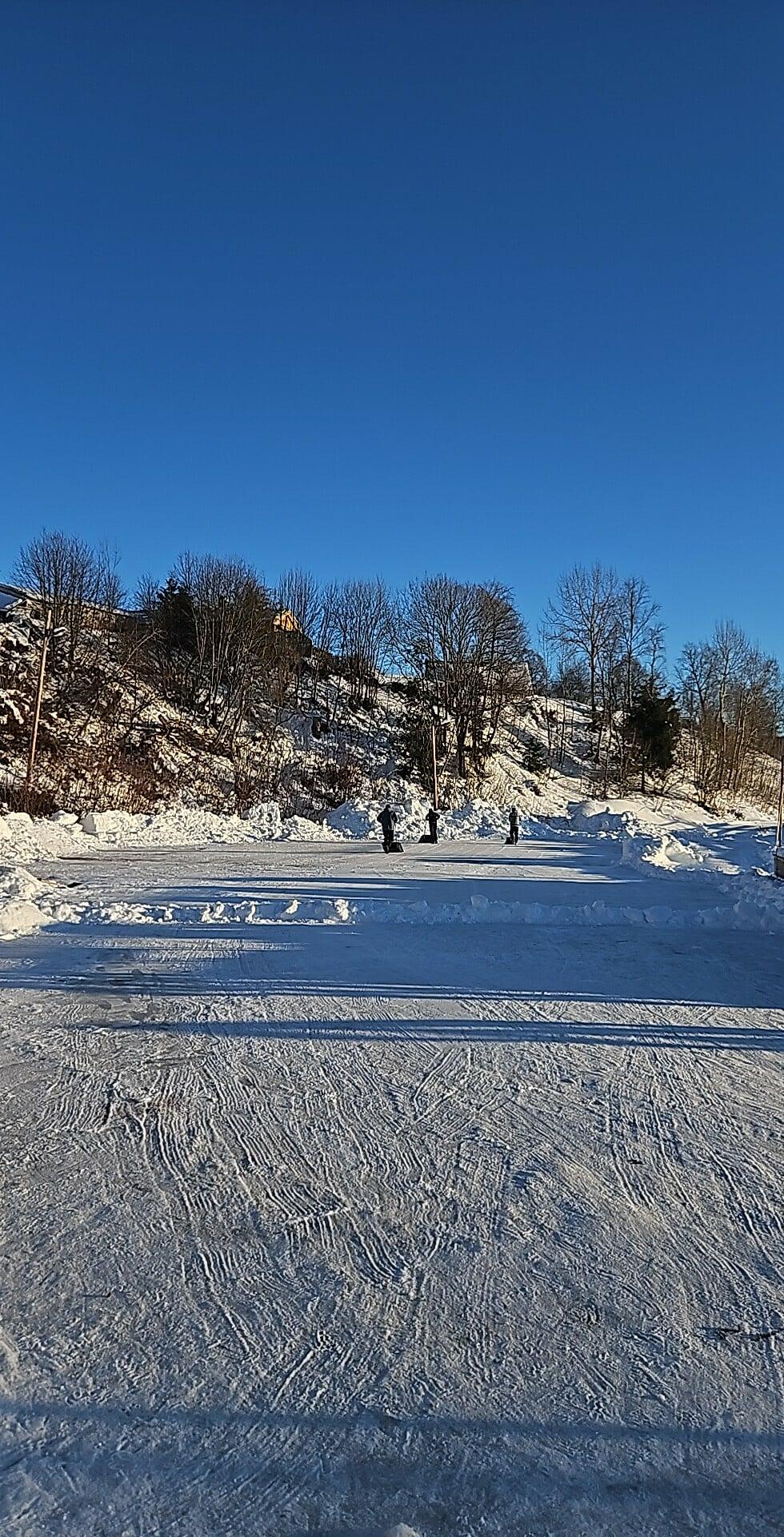 Nå er isbanen endelig klar for bruk! Banen er åpen for alle som vil ta en tur på isen.