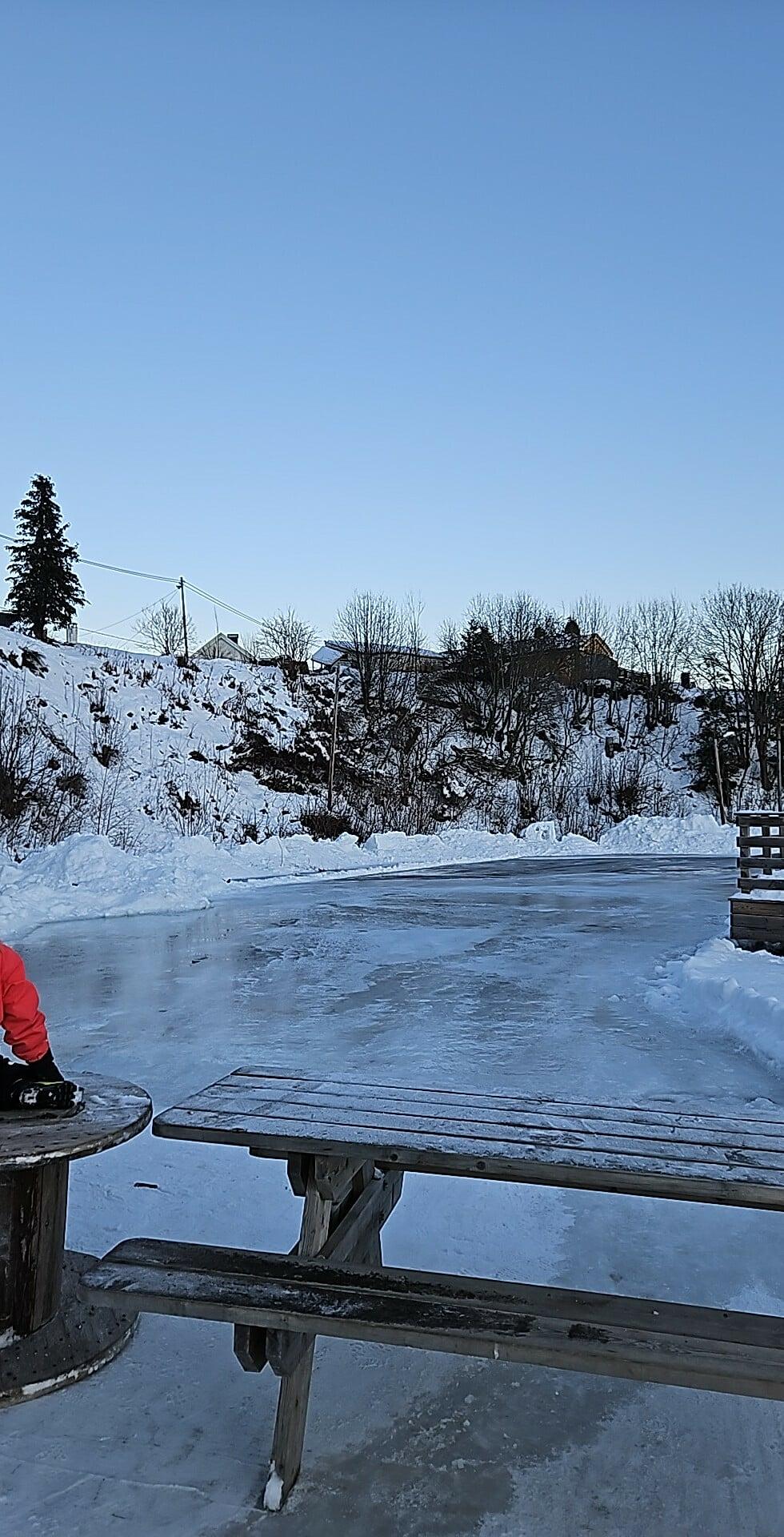 Nå er isbanen endelig klar for bruk! Banen er åpen for alle som vil ta en tur på isen.